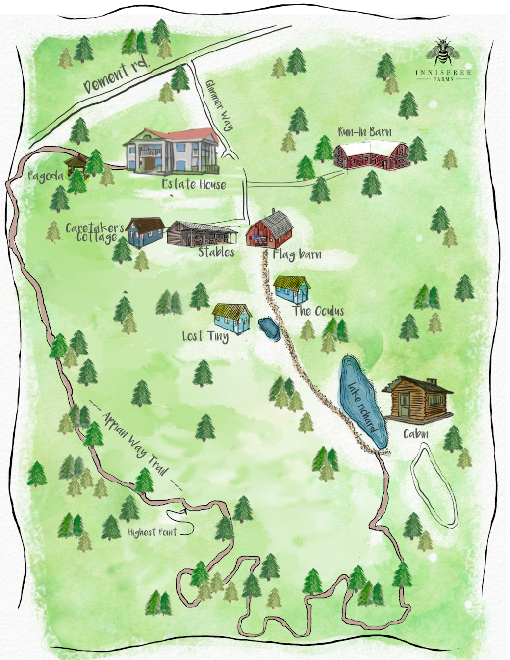 A wooded corner of a former horse pasture hosts the newest tinyhouse at Innisfree. The perfect getaway for couples who want to unplug and reconnect. Everything you'll need and nothing you don't including a comfy bed, a beautiful view, full facilities and the great outdoors. There's just one queen size bed so anyone else would be camping out on the floor or outside, but this is the perfect retreat to get away from the city and the grounds and read and think or just enjoy the natural setting.